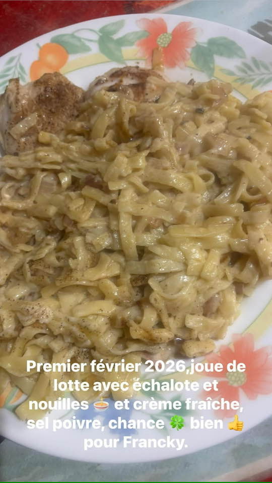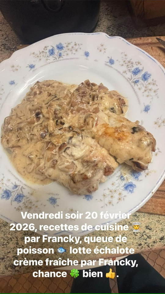 Vendredi soir 20 février 2026, on épluche et coupe échalote, on les fait revenir au beurre, ensuite on fait dorer de chaque côté les queues de lotte, ensuite , on ajoute échalote et crème fraîche , on remue souvent , Bon Appétit!